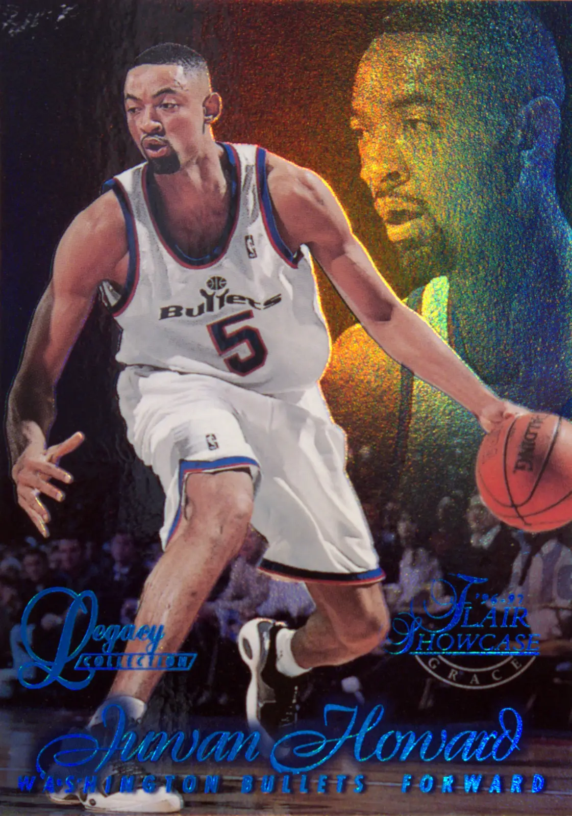 Card Snapshot: Details for the 1996-97 Flair Showcase Juwan Howard card #ROW 1 SEAT 5 (Washington Bullets). Variant: Legacy Collection. Numbered: 13/150. View high-res images and collector facts.