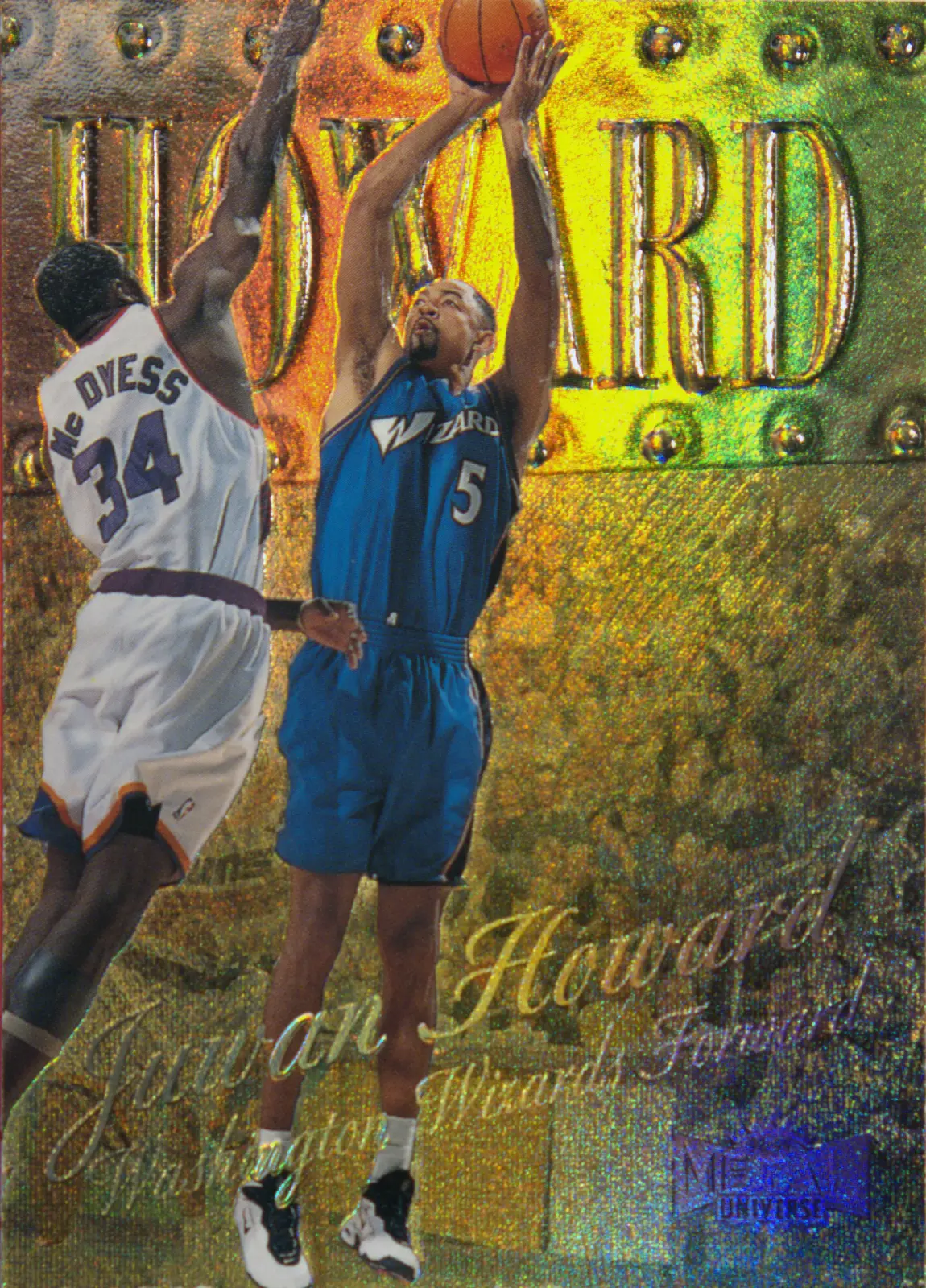 Card Snapshot: Details for the 1998-99 Fleer Metal Universe Juwan Howard card #5 (Washington Wizards). Variant: Precious Metal Gems. Numbered: 33/50. View high-res images and collector facts.