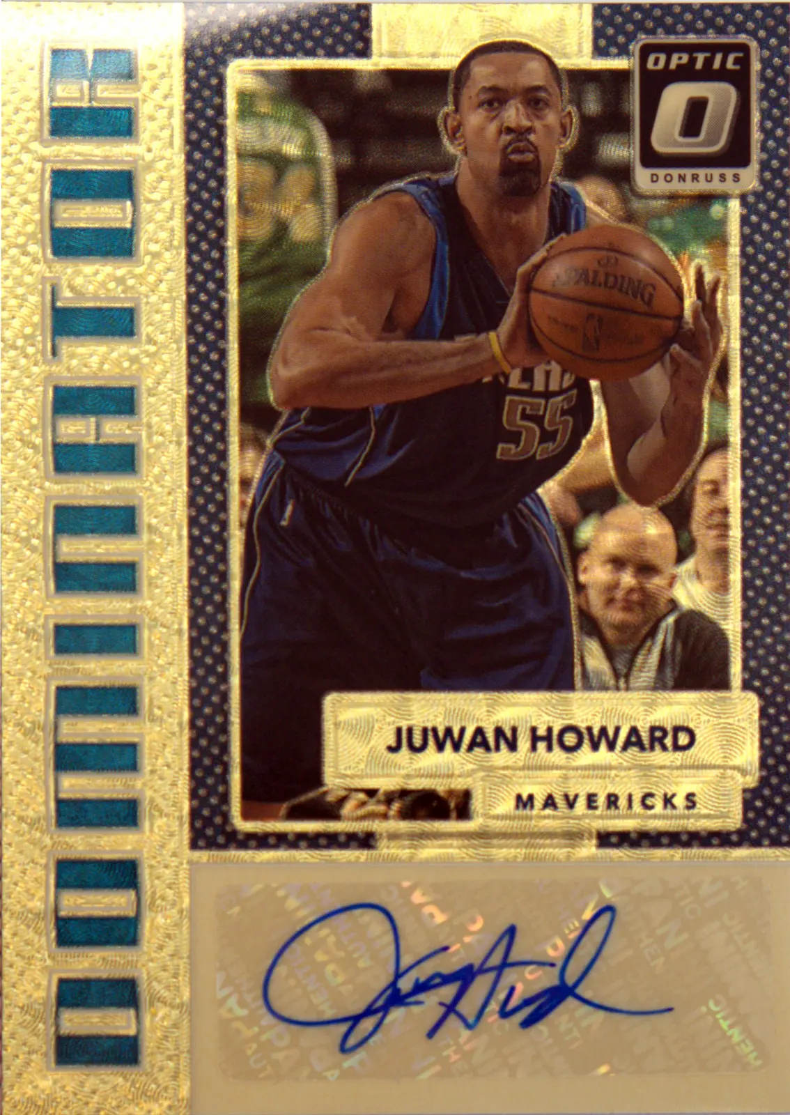 Card Snapshot: Details for the 2017-18 Panini Donruss Optic Juwan Howard card #18 (Dallas Mavericks). Variant: Gold Vinyl. Numbered: 1/1. View high-res images and collector facts.
