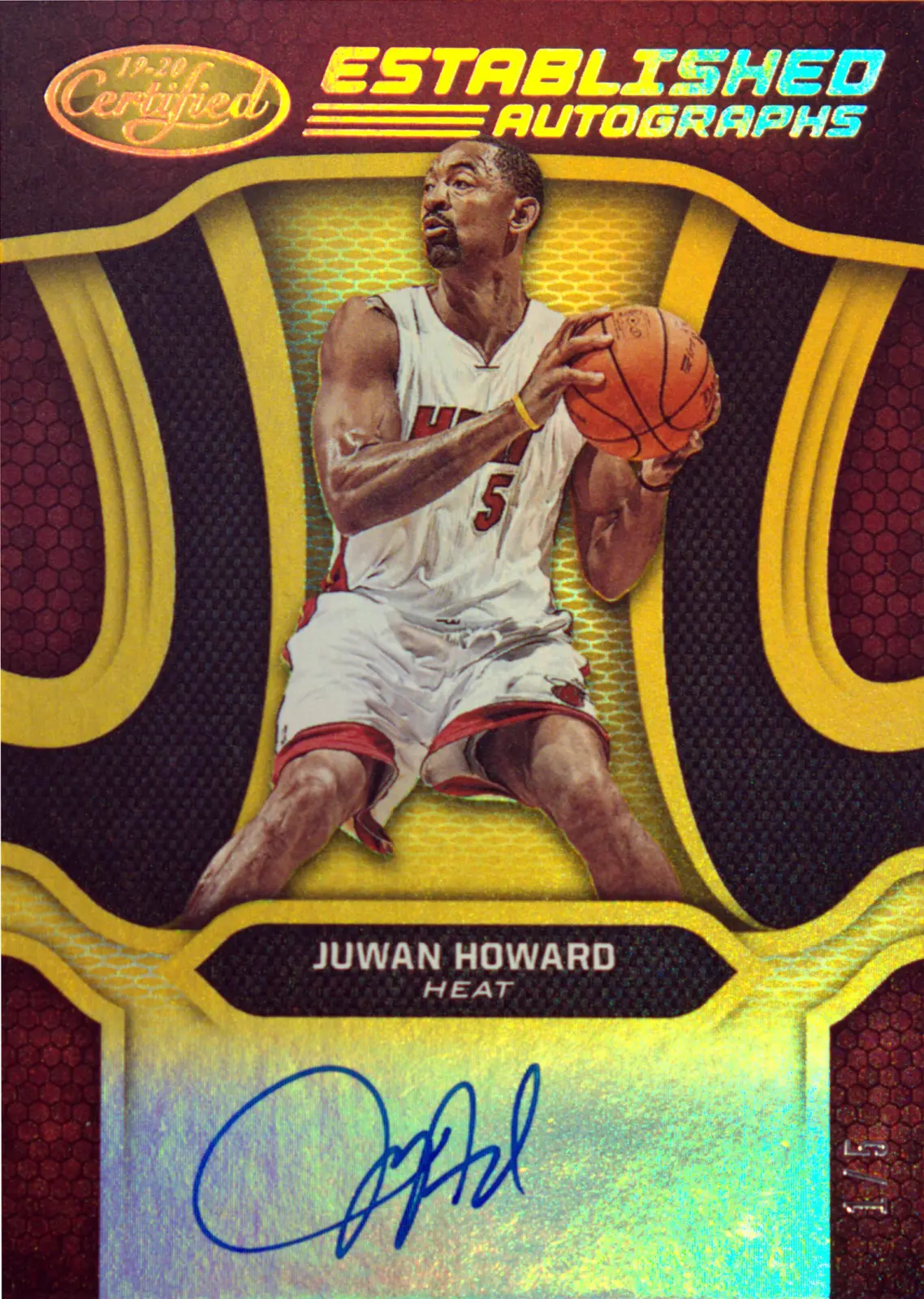 Card Snapshot: Details for the 2019-20 Panini Certified Juwan Howard card #EA-JH (Miami Heat). Variant: Gold. Numbered: 1/5. View high-res images and collector facts.
