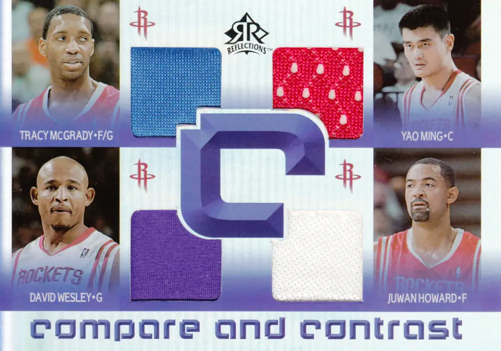 This unique Juwan Howard card is a highlight of the 2005-06 season. Produced by Upper Deck as part of the UD Reflections set, this specific card features the Compare and Contrast theme. It is the Jersey version, offering a distinct look compared to the base set. This is a limited edition card, serial numbered 5 out of a total print run of 25. With such a low print run, it is considered a very rare 'short print' (SP). It also contains a piece of Game Used Memorabilia, making it a tangible piece of sports history. It captures Juwan Howard during their time with the Houston Rockets.