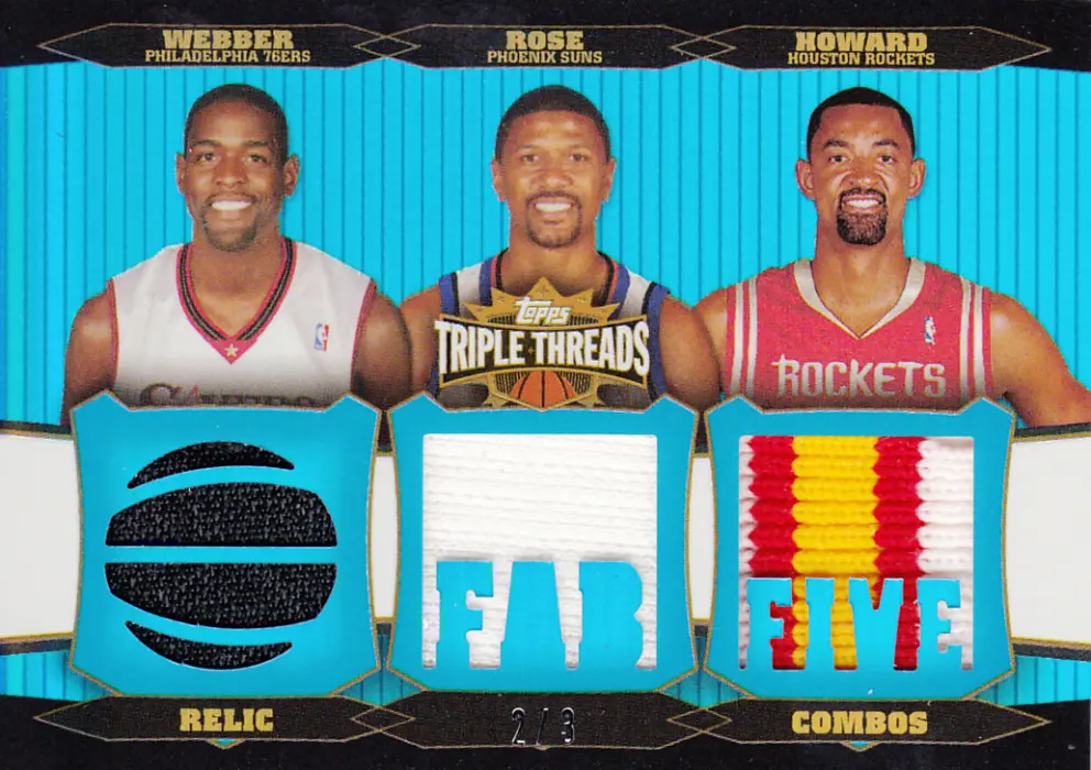 Card Snapshot: The 2006-07 Topps Topps Triple Threats Juwan Howard Sapphire (Card #TTRC-55) is a limited edition sports trading card, serially numbered 2/3. It contains game-used memorabilia.