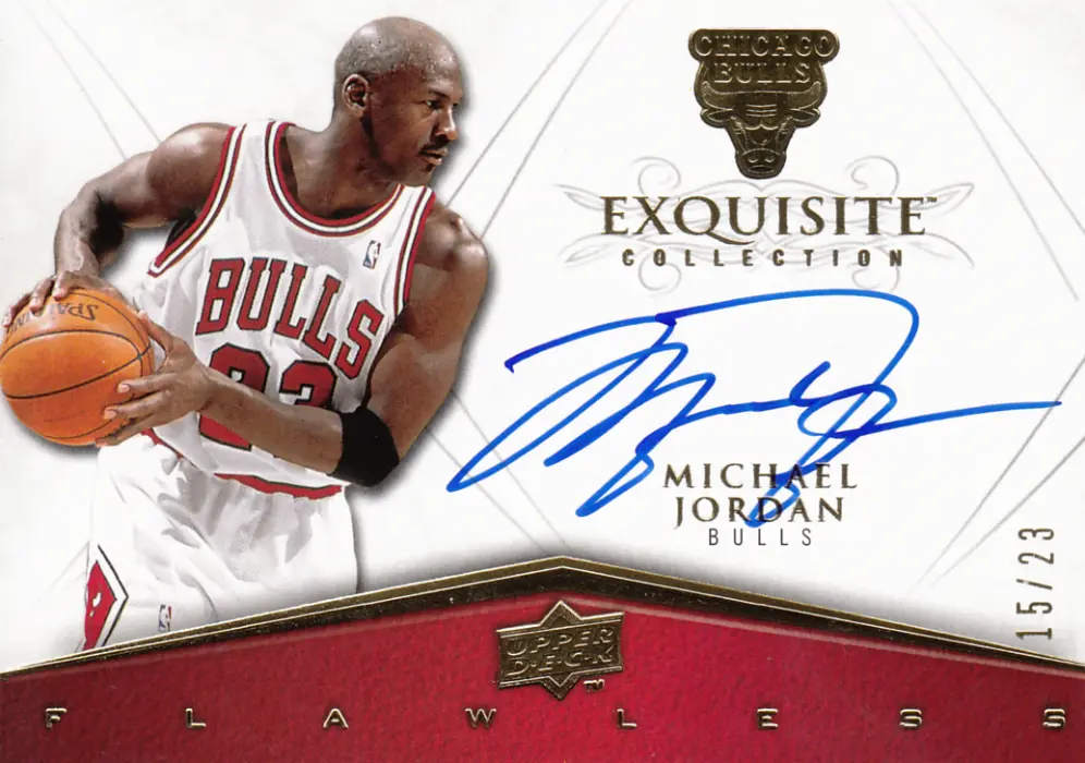 This unique Michael Jordan card is a highlight of the 2008 season. Produced by Upper Deck as part of the Exquisite set, this specific card features the Flawless theme. It is the Autograph version, offering a distinct look compared to the base set. This is a limited edition card, serial numbered #15/23. It captures Michael Jordan during their time with the Chicago Bulls.